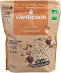 Take your breakfast from ordinary to extraordinary with Favrichon's Organic Chocolate and Chestnut Cereals. Crafted from the finest organic ingredients, this delectable cereal is a wholesome and tasty start to your day. High-quality brown rice forms the base, complemented by the delightful sweetness of chestnut cream and flour. To top it all off, the organic chocolate chips provide a decadent touch that makes this cereal a real treat. And with the subtle hint of cane sugar and vanilla extract, you might just forget you're eating breakfast and not dessert!