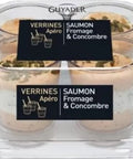 How to UseGuyader's Salmon Fresh Cheese and Cucumber Verrines are ready to serve straight from the jar. They can make a delicious and sophisticated starter for any meal. Simply open the lid and scoop the verrine onto individual serving spoons or small plates. They also make a perfect companion for toast or crackers for a light, refreshing snack. For an enhanced flavor profile, chill before serving.