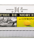 Savor the unique blend of marine delicacy and citrus vibrance with the J. Gonidec's Finely Smoked Cod Liver With Organic Lemon Slice. This gourmet delight, nestled in the savory groceries category, is a perfect treat for seafood enthusiasts. The cod liver, constituting 92.5% of the product, is smoked to perfection and exudes a delicious oil that enhances its rich, smooth flavor. The added zest of organic lemon, constituting 6.6% of its agricultural ingredients, lends an invigorating citrus twist to the taste. This product is certified by fr-bio-10, ensuring that organic farming methods were used in its preparation.