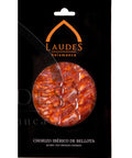Experience a taste of Spain with Laudes Sliced Iberian Acorn-Fed Chorizo. This authentic, top-quality chorizo ibérico is made from acorn-fed Iberian pigs, resulting in a uniquely rich and flavorful sausage. The chorizo is carefully cured and seasoned with a delicious blend of spices, offering a deeply savory and slightly spicy taste that will elevate any dish it accompanies. This premium cold cut from Laudes is a true gourmet treat, perfect for those who appreciate the finest in Spanish charcuterie.