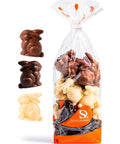 Indulge in the cutest and most delicious Easter celebration with our Assortment of Mini Bunny Chocolate Figurines from Daniel Stoffel. This delightful collection features finely crafted bunny-shaped chocolates in three rich flavors – dark, white, and milk chocolate. Made from premium Fair Trade chocolate, these confections are a symphony of sweetness and creaminess, with a hint of natural vanilla flavor. We believe in responsible sourcing, and our blend of cocoa butter, cocoa mass, sugar, and milk powders assures a divine taste and a guilt-free indulgence. Please note that while we follow strict cleanliness protocols, our chocolates may contain traces of tree nuts.