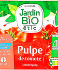 How to UseJardin Bio Tomato Pulp is an easy-to-use ingredient that can instantly uplift your dishes. Simply stir it into your preparations to enrich the taste. It works great as a base for pasta sauces, soups, stews, or even homemade pizza sauce. Don't forget to season as per your taste preference. Being a concentrated product, a small amount goes a long way.