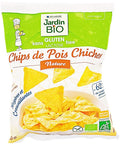 Indulge in the savory goodness of Jardin Bio's Plain Chickpea Crisps. Expertly crafted using 50% chickpeas, these crispy snacks offer a satisfying crunch that's perfect for snacking and entertaining. The combination of high-protein chickpea flour, crushed chickpeas, lentil flour, and sunflower oil creates a hearty, wholesome crisp with a delicately mild flavor. Tapioca starch provides an additional crunch while a dash of salt enhances the natural chickpea taste. To top it all, antioxidant-rich rosemary extract is added, which gives these crisps a unique depth of flavor and a healthful boost.