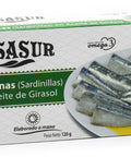 Fresh from the Spanish coast, Pesasur Small Sardines in Sunflower Oil are a staple for your pantry. Hand-selected, these small sardines (sardinillas) are packed with flavour and nutrients - they're an excellent source of protein, Omega-3 fatty acids, and essential vitamins, making them a healthy choice for your meals. Immersed in high-quality sunflower oil with a hint of salt, the sardines maintain their tender texture and rich, ocean-fresh taste. Whether you're a fan of seafood or looking to incorporate more into your diet, these sardines will not disappoint.