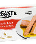 Experience the rich, authentic flavors of Spain with Pesasur's Tuna Fillets in Olive Oil. Sourced from the finest waters, our top-quality tuna is preserved in premium olive oil, adding a luscious layer of flavor and ensuring the fillets remain tender and delicious. This combination of quality ingredients not only guarantees a superior taste but also provides a great source of Omega-3 fatty acids, protein, and essential vitamins. Perfect for health-conscious consumers looking to add a gourmet twist to their meals.