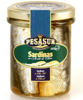 Enjoy a taste of the Mediterranean with Pesasur's Sardines in Olive Oil. These sardines, or 'sardina pilchardus', are carefully selected for their fresh and tender quality, and are delicately cooked to perfection before being preserved in high-quality olive oil. They are a great source of essential nutrients like Omega-3 fatty acids, protein, and Vitamin D. With no additional preservatives or artificial flavors, they provide a healthy, gourmet experience that perfectly captures the essence of simple, yet flavorful Spanish cuisine.