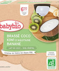 IngredientsSri Lankan Coconut Milk * 20% (Coconut *, Water), Aquitaine Kiwis * 20%, Water, Ecuadorian Bananas * 17%, Aquitaine Apples *, Camargue Rice Pgi *, Concentrated Juice Spanish Lemon *. * Ingredients From Organic Farming