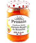 Relish the homemade goodness of Prosain's Organic Red Roussillon Apricot First Quality Jam. Made from succulent Roussillon apricots and sweetened with unrefined cane sugar, this jam is a delicious blend of natural flavors. Notably, all the ingredients are sourced from organic farming, making this jam a healthier, chemical-free, and guilt-free choice. The addition of organic lemon juice concentrate enhances its taste with a hint of tartness while the fruit pectin gives it a perfect spreadable consistency.