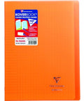 Introducing the practical and innovative Clairefontaine Notebook + Clear Cover Seyes Squares, available in a vibrant orange color. This 96-pages A4 notebook is a 2-in-1 economical solution that comes with a durable plastic cover and two convenient flaps that double as bookmarks and storage pockets. An adhesive label is included, meaning you won't need a separate notebook protector. The strong, protective cover is made from transparent polypropylene that safeguards your notes against damage. Each page is Clairefontaine's signature velvety vellum 90g paper, offering a unique gliding feel as you write. This product is PEFC certified, representing sustainable forest management, and proudly made in France.