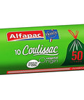 Presenting Alfapac's Trash Bags with Sliding Link - designed with a capacity of 50 litres to cater to your daily waste disposal needs. These bags are not just sturdy and reliable but also boast easy-to-use sliding links for secure closing. Made to fit a wide range of bins, Alfapac Trash Bags are perfect for both kitchen and general household use. Maintaining cleanliness has never been easier with these high-quality, durable bags that make waste management efficient and hassle-free.