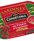 Savor the taste of the sea with Connétable's Sardines in Extra Virgin Olive Oil with Espelette Pepper. This canned fish delicacy features premium quality sardines, making up 80% of its ingredients for a truly substantial treat. Enhanced with the richness of extra virgin olive oil and a punch of flavor from Espelette pepper, every bite is an exquisite blend of high-quality ingredients. The addition of red pepper, tomato puree, salt, and spices contributes to its robust and unique taste. This is a perfect choice for those looking for a healthy yet delicious option in their diet as sardines are a rich source of omega 3 fatty acids, protein, and vitamins.