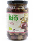 Indulge in the rich and savory taste of Carrefour Espana BIO's Organic Green and Black Olives Cocktail. This organic blend of whole green and black olives is a visual and gastronomic delight that will elevate any meal. These juicy olives are handpicked from their home in Aragon and are meticulously mixed with aromatic garlic, tangy gherkins, and fragrant oregano, all while being preserved in a mild vinegar. The result? A gourmet, tasty cocktail of olives that meet the highest standards of organic farming.