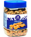 Introducing Carrefour Espana's Fish Shape Aperitif Biscuits, a delightfully original twist on the classic aperitif snack. Each biscuit is carefully crafted into a playful fish shape, adding a touch of whimsy to your snack time. Infused with a savory blend of wheat flour, vegetable fat, and malt syrup, these appetizer biscuits boast a unique, crunchy texture and rich flavor that's sure to delight your taste buds. With 2% salt, they offer the perfect balance of salty and sweet, making them an irresistible snack option. As they may contain traces of milk and soya, they're also great for those who can tolerate these allergens.